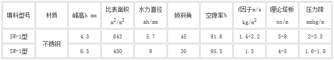 sw型網(wǎng)孔波紋填料幾何特性參數(shù)
