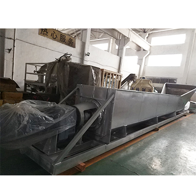 工作時(shí)在尾端進(jìn)料并加入洗液,在中上部加噴淋洗液,物料在輸送中進(jìn)行洗滌,懸浮物在尾部溢流堰溢出,