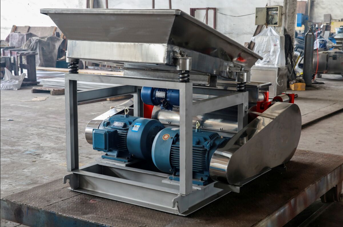 This machine has the characteristics of small volume, high crushing ratio (5-8), low noise, simple structure, uniform granularity of materials, low rate of over-crushing.It can grind the salt size between 0.5mm and 2.5mm, easy to maintain, sensitive overload protection, safety and reliability. Other types of crusher can’t guarantee the granularity of salt, normally the over-crushing rate is much higher than roller crusher.